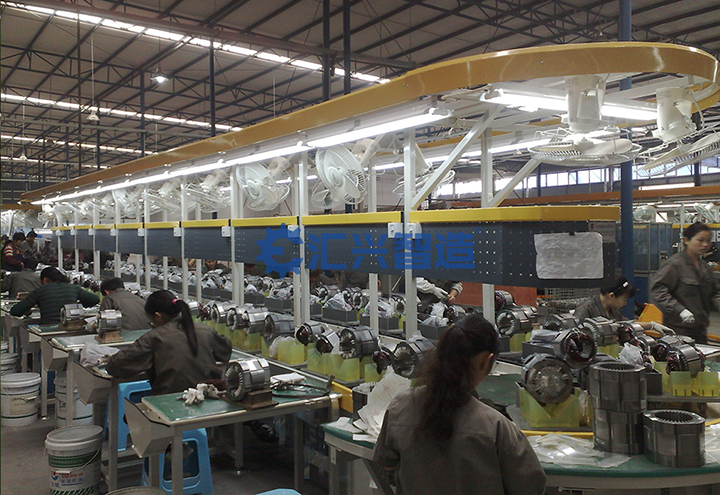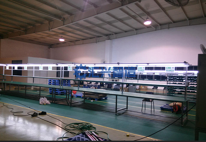 鏈板線采用A3板折制鏈板線專用軌道,而副導軌則采用角鐵制作。其中傳輸鏈條采用的是工業專用鏈板線鏈條;照明是采用單支帶罩T8LED日光燈,兩側連續安裝;工具吊軌采用專用風批吊軌鋁材,兩側每米安裝一套風批滑輪。此外,工藝看板采用專用雙杠H型鋁材做支架,每米配置一套亞克力板;采用6分鍍鋅制作而成的氣管和采用鍍鋅腳杯制作而成的地腳,共同為鏈板線的高效輸送保駕護航,能有力確保生產線的順利運行。