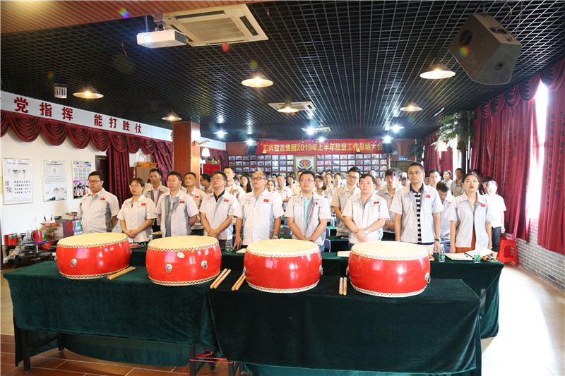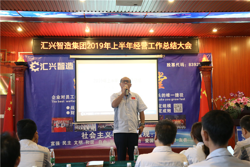 大會最后一項議程由董事長鐘輝作2019年上半年經營工作總結以及2019下半年工作部署。鐘董圍繞公司的軟實力打造和硬實力建設,要求全體干部和職工在下半年要以只爭朝夕的緊迫感和使命感,狠抓落實“258行動計劃”?!緟R興智造258行動計劃:2:堅持企業硬實力和品牌軟實力兩個基本點,堅持設備智造和配件銷售兩條腿走路,堅持國內市場和國外市場兩只手發力;5:主動做好個人的心態管理、目標管理、時間管理、學習管理、行動管理等五項管理;8:主動發揚“5+2”、“白+黑”的艱苦奮斗精神,每一位員工都要堅守崗位,既要出工,也要出活,特別是領導干部要帶頭利用晚上1小時進行學習和總結,確保完成2019年集團智能制造板塊2.58億元的經營業績目標!】