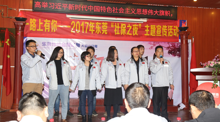 這是歌曲《春天里》的歌詞,表達了對未來的不安和憂愁。但是,如今的我們卻堅信:我不會老無所依,我不會踽踽前行,因為一路上有你。2017年12月23日,東莞市社保局大嶺山分局在匯興智造舉辦了“一路上有你——2017年東莞‘社保之夜’主題宣傳活動”。