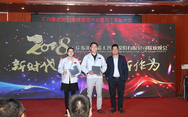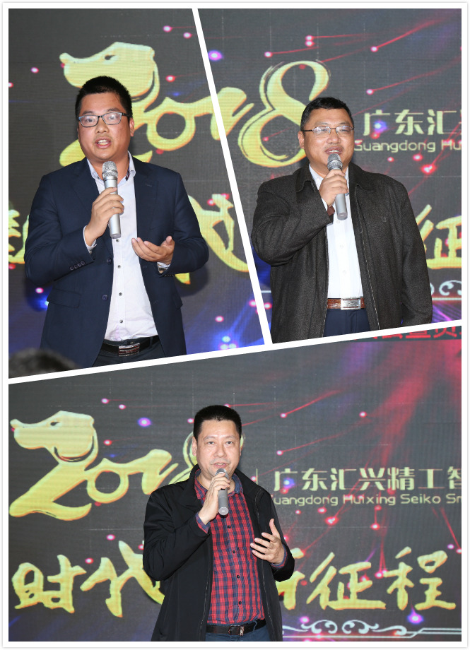 東莞證券何總、大信會計事務(wù)所黃總、華商律師事務(wù)所姜總等嘉賓致辭,均表示在2017年與匯興智造合作得相當(dāng)愉快,同賀匯興智造取得驕人成績,并表達了在2018與匯興智造繼續(xù)合作的愿望,共祝匯興智造再創(chuàng)輝煌。
