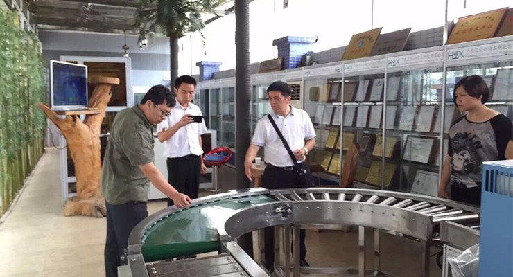 7月31日,湖南長沙上市集團楚天科技曹副總、蔡主任、李經(jīng)理一行蒞臨匯利興集團指導參觀指導,匯利興集團(后更名:廣東匯興精工智造股份有限公司,簡稱:匯興智造)董事長鐘輝、外貿(mào)部經(jīng)理羅大海陪同。參觀了我司的工裝板流水線、無動力滾筒流水線、機器人設備、動力滾筒線等智能裝備。