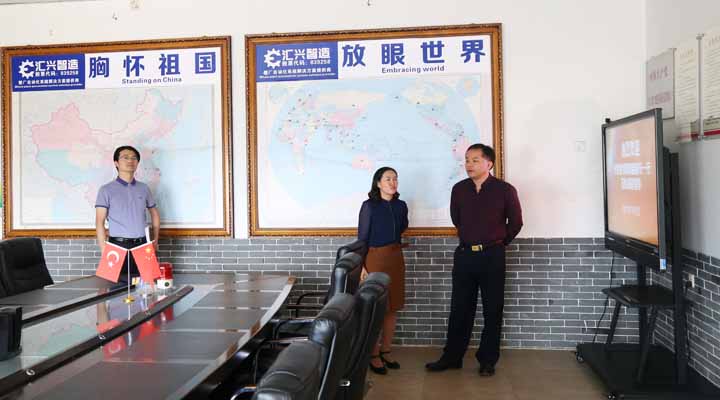 11月7日,市委宣傳部常務副部長王部長一行蒞臨廣東匯興精工智造股份有限公司(股票代碼:839258)指導宣傳文化工作。匯興智造上市辦辛主任對對王部長一行的到來的到來表示熱烈的歡迎,并陪同他們參觀了匯興智造獨具特色且富有濃郁文化氣息的工業4.0智能裝備體驗館,隨后雙方就公司的文化建設等問題展開了深入的交流和探討。
