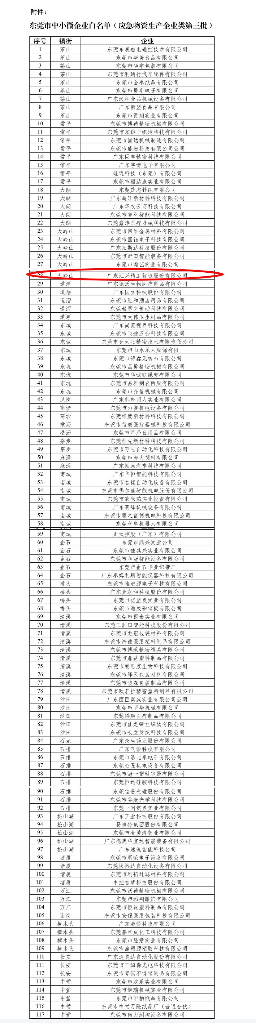 責任與擔當丨匯興智造入選應急物資生產企業白名單!