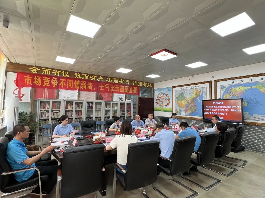 5月15日,大嶺山市場監(jiān)管局調(diào)研員高級主辦劉明周、監(jiān)管二股股長歐陽送明一行,東莞市商標(biāo)品牌研究院榮譽院長盧靜娜、副院長陳成蝶、智庫專家周沛